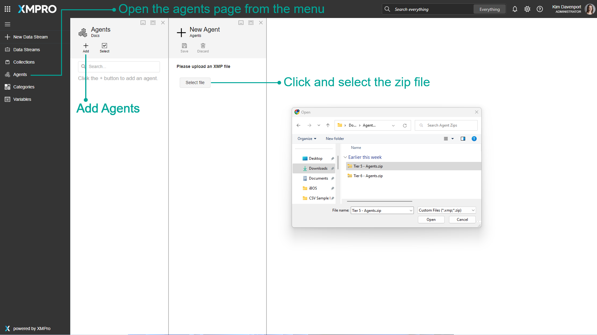 - Click Select file and upload the Tier 5 - Agents (1 of 2).zip file found in the link above
