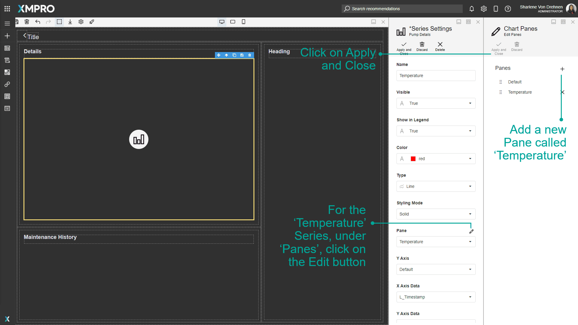 When making the 'Temperature' series, you will need to add a new Pane called 'Temperature.'