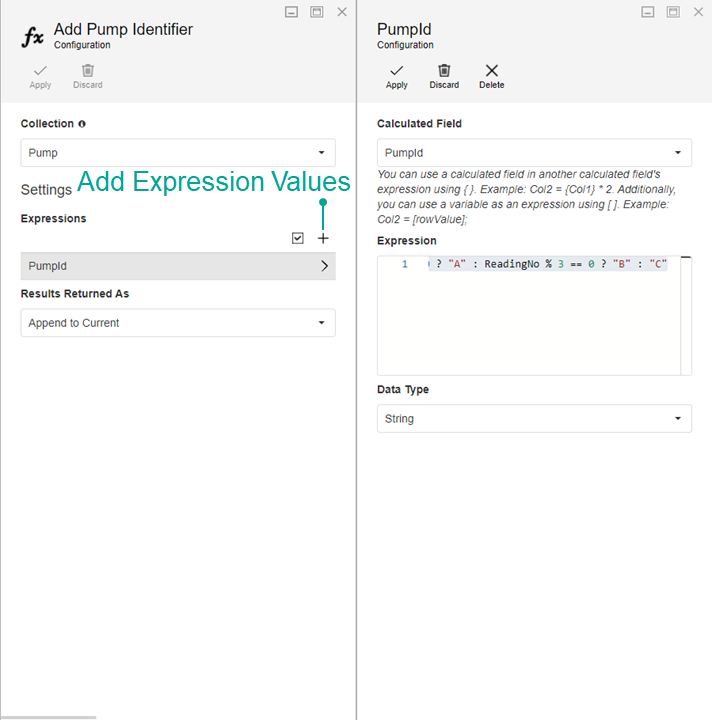 - Calculated Field: "PumpId" - The field won't exist yet in the dropdown, so you must enter it yourself.