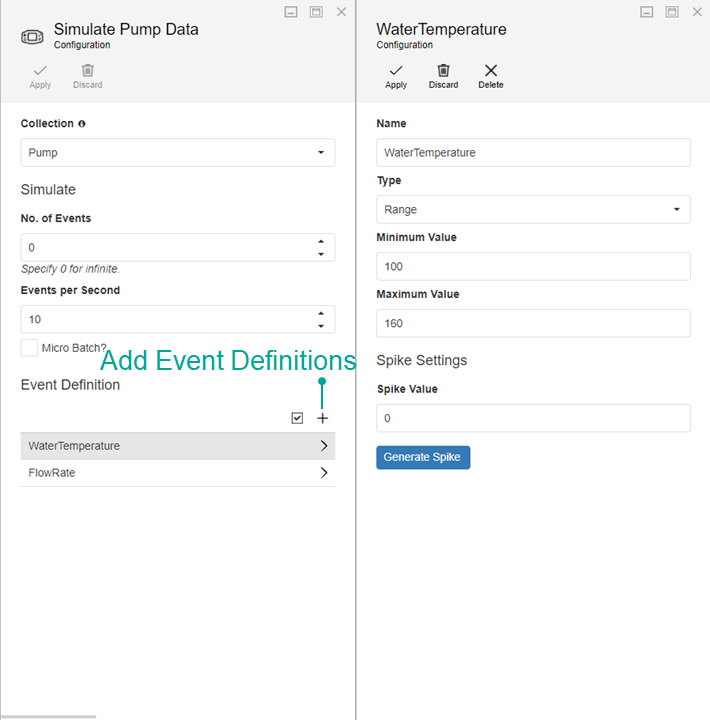- Event Simulator as "Simulate Pump Data"