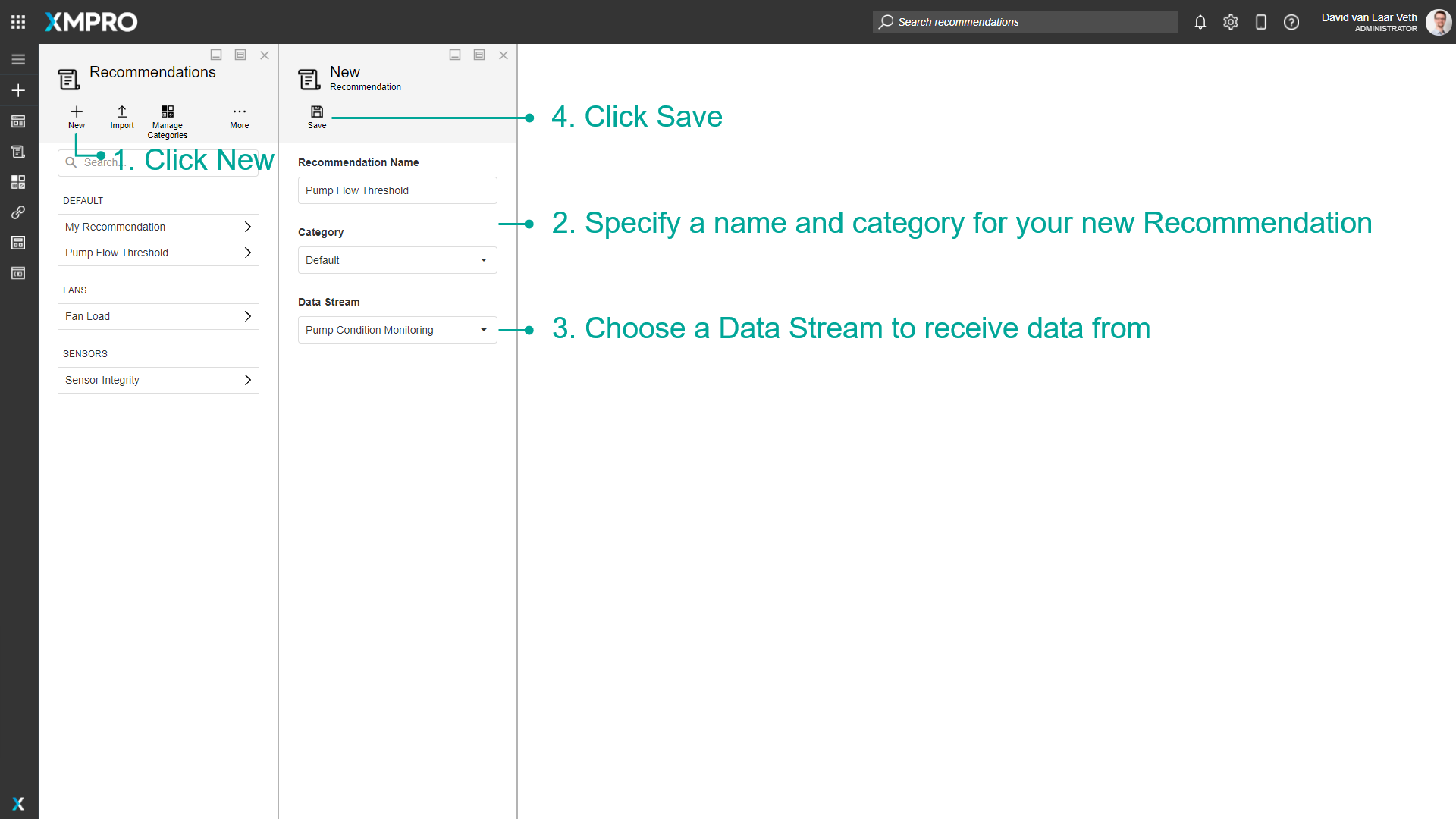 - Give the Data Stream a name. For example, "Pump Condition Monitoring"