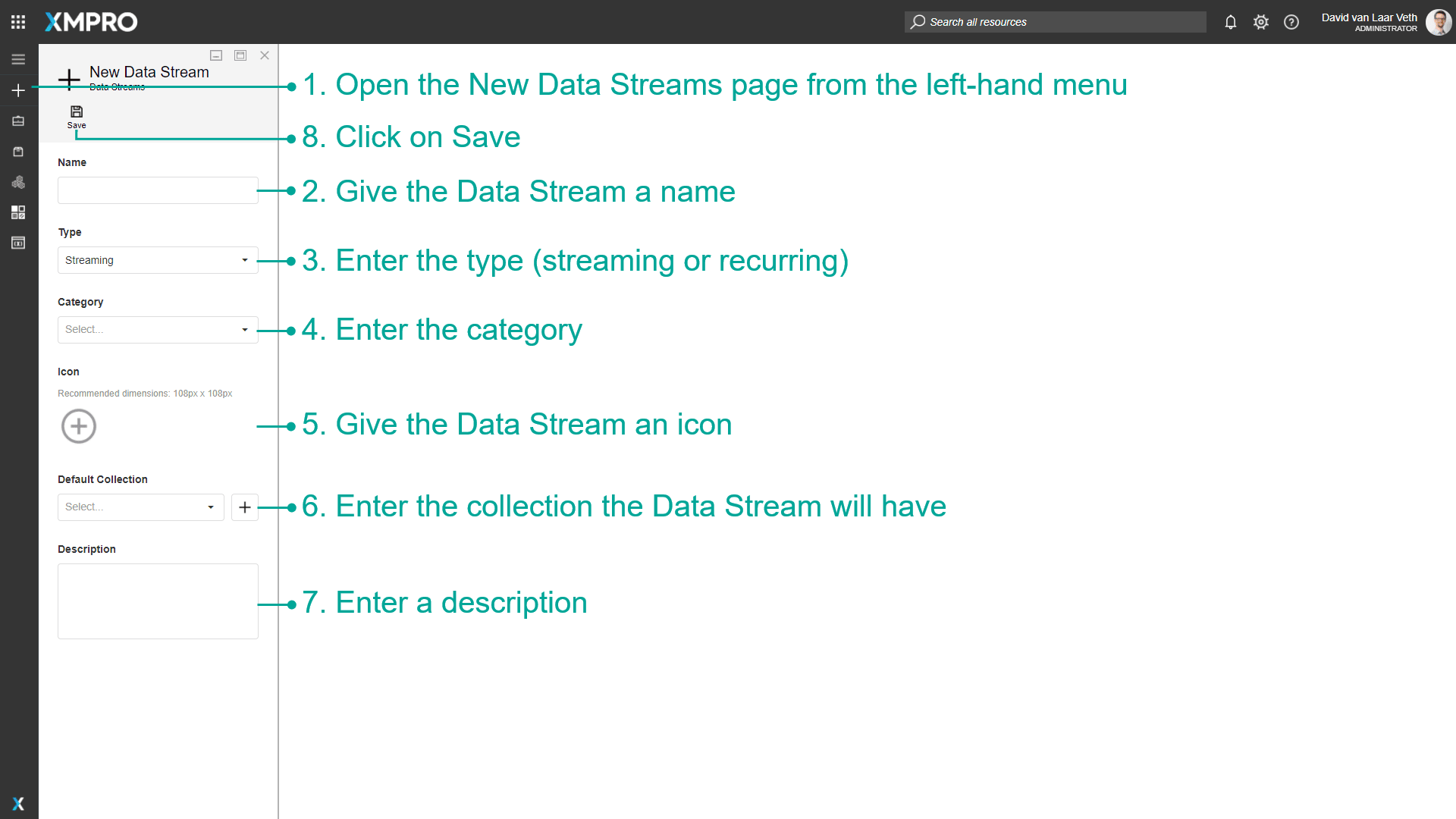 To begin, we will need to create a new Data Stream. To create a Data Stream, follow the steps below: