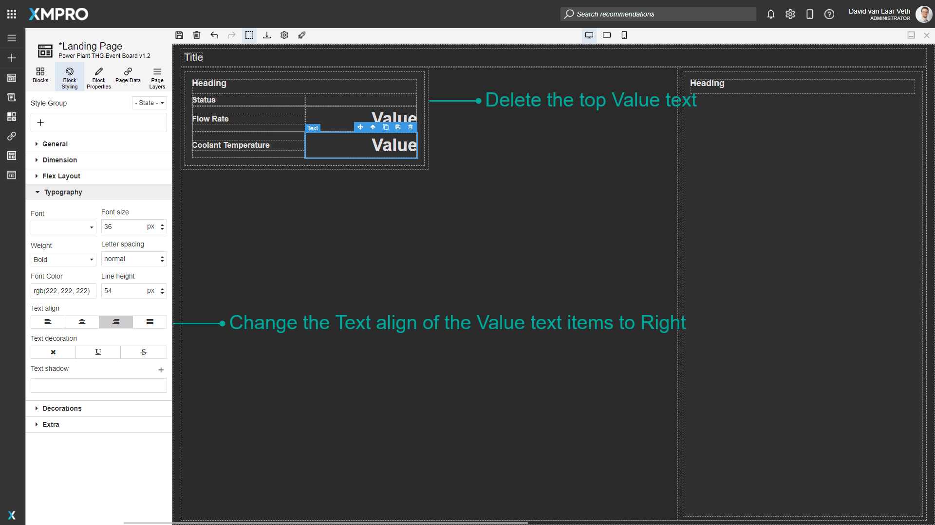 Right-align the remaining two Values by expanding the Typography section and changing the Text Align property to Right.