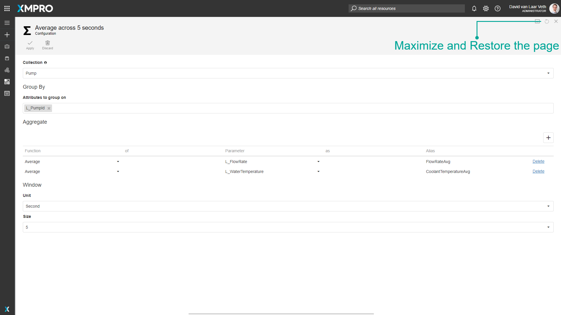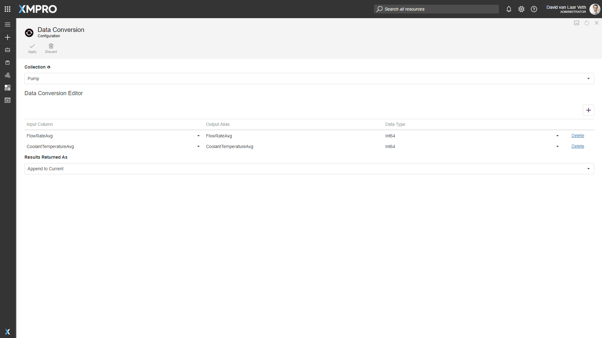 Press "Apply" on the PumpId expression and the Add Pump Identifier configuration pages, and press "Save" on the Data Stream page.