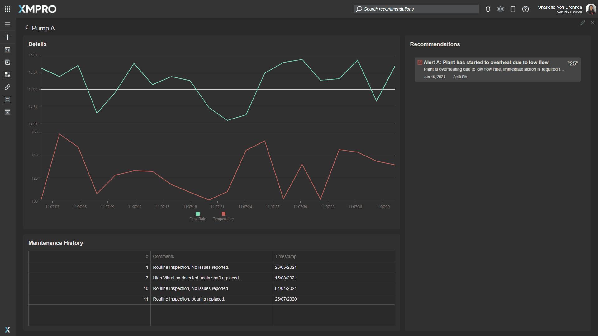 Engineers should be provided a view to check the history of pump telemetry, maintenance records, and reservoir level to enable them to take necessary action.