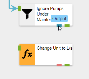 To connect two Stream Objects, click and drag the green rectangle (Output) at the bottom edge of the first Stream Object, move the cursor to the green rectangle on the left edge of the second Stream Object (Input).