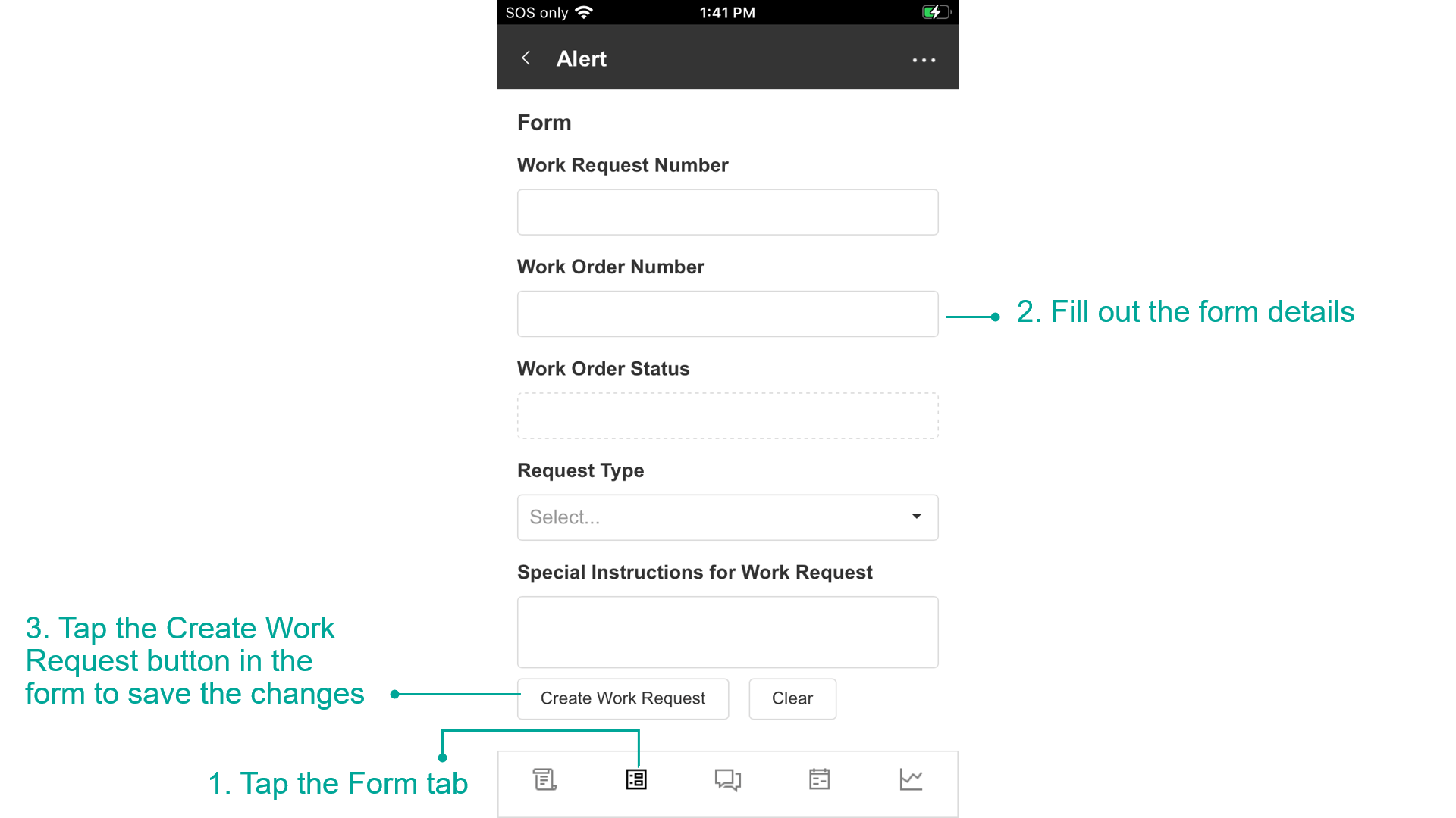 - Tap the Create Work Request button in the form to save the changes.